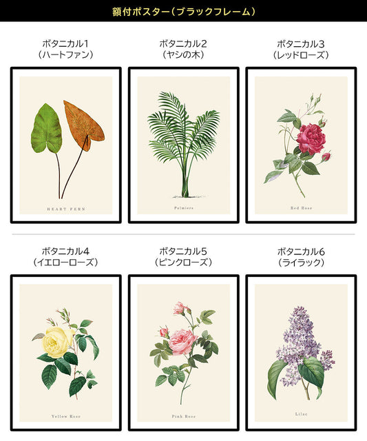 額付A4ポスター|ボタニカル デザイン・A4サイズ フレーム(ブラック)セット