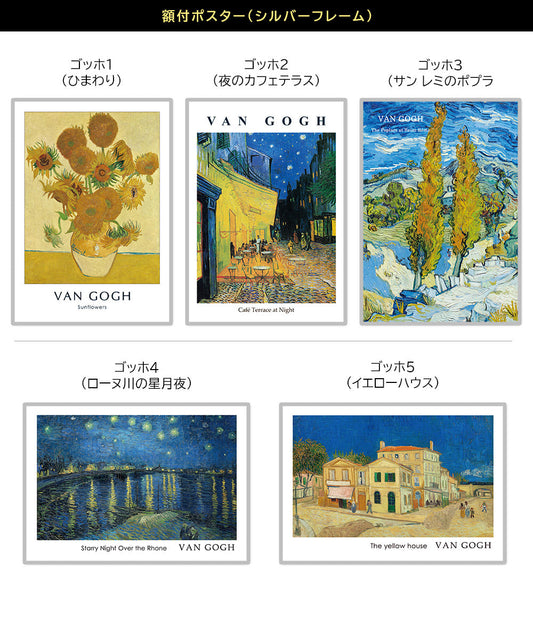 額付A4ポスター|ゴッホ 名画・A4サイズ フレーム(シルバー)セット
