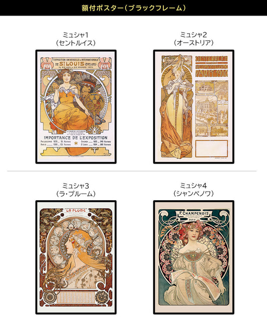 額付A4ポスター|ミュシャ・A4サイズ フレーム(ブラック)セット