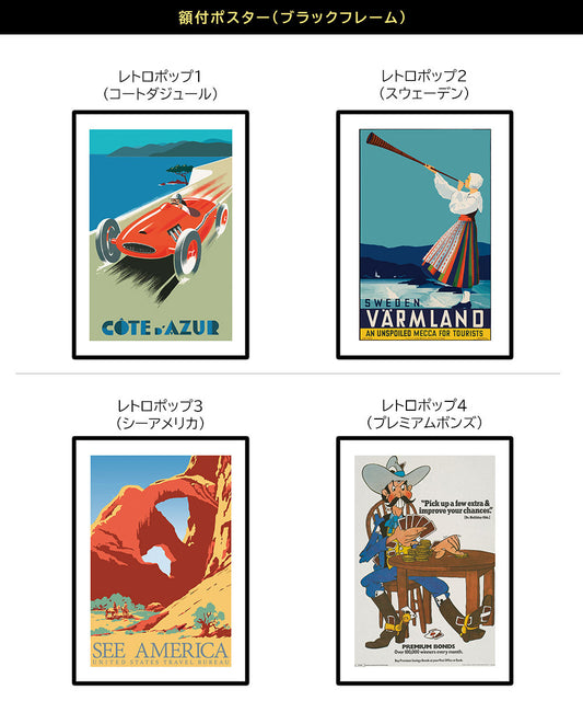 額付A4ポスター|レトロポップ・A4サイズ フレーム(ブラック)セット