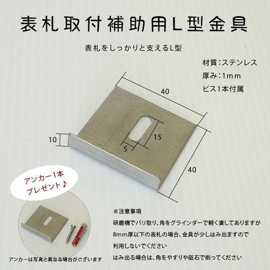 L型金具 表札取付 補助 ステンレス製 40mm 落下防止 オプション