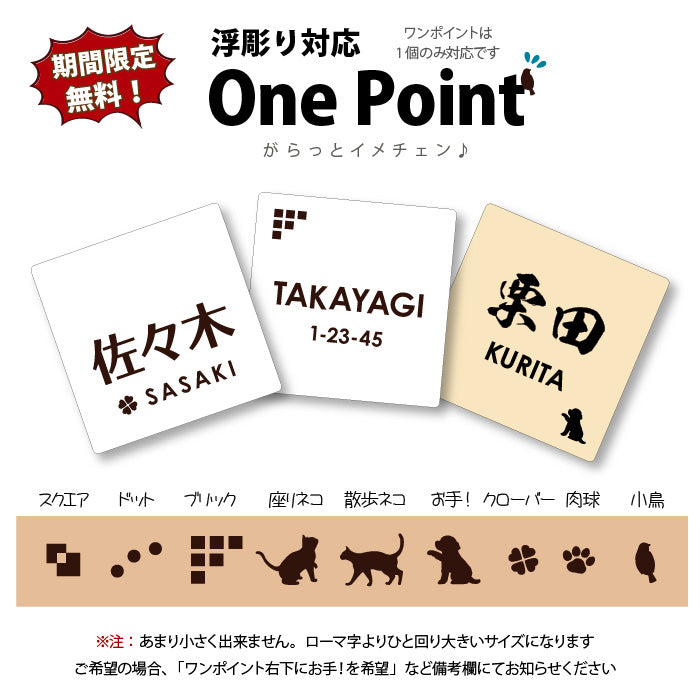 デザインのアレンジ(番地やワンポイントの追加・模様不要・名前の配置位置など)に無料対応しておりますので、ご希望がございましたら備考欄にご記入ください