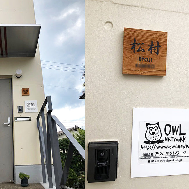 木目を浮き出させており重厚なイメージで、手作業で仕上げるため、手作り感も感じる表札です