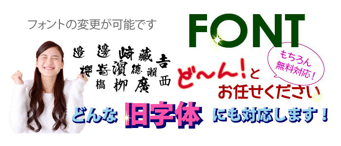 手書き文字やイラスト(太目の線画・シルエット画)をご希望の場合、オプションの「自分文字」にてのご対応となります
